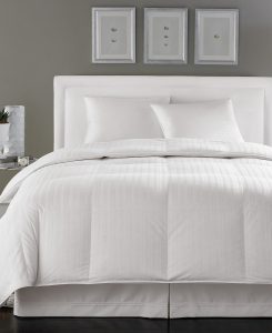 Feel good about your purchase knowing that these white, satin-striped sheets, duvet cover, pillow cases transform any bed into a relaxing oasis.
